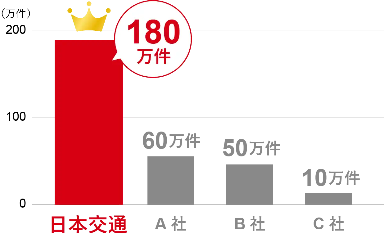 日本交通では、月間 180万件の無線配車があるため、お客様を乗せてる時間が多く、安定して稼ぐことができます。